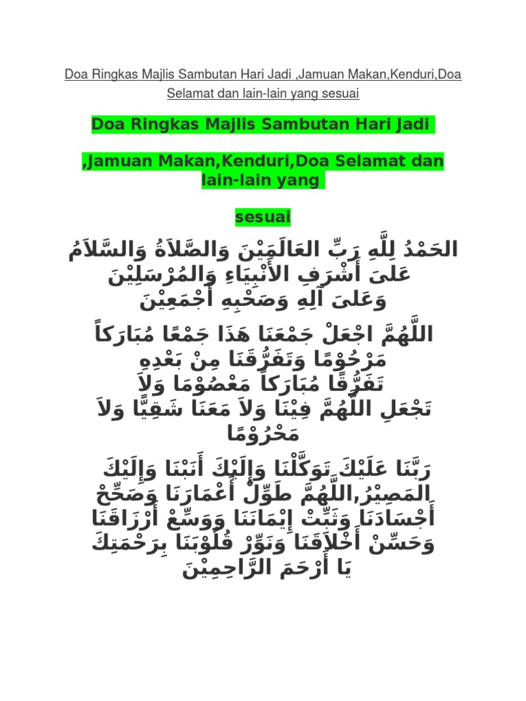 Doa Ringkas Majlis Sambutan Hari Jadi Pdf